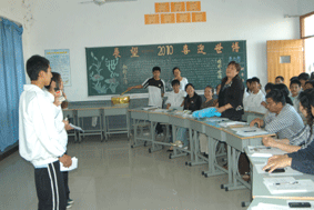 主持人的随机应变,多媒体的播放设计,节目的衔接串联,都由087C2班的学生亲自参与,独立完成。两位优秀的主持人,男生高鑫磊、女生陶生,清晰的吐字、流畅的串词,都给在座的老师同学留下了深刻的映象……接着,有着“青藏高原”般嗓音的马永亮带领的诗朗诵《文明迎世博》更是慷慨激昂;随后,学生原创的情景剧《课间十分钟》,采撷了日常学习生活中的两种行为的“对比画面”,将不良陋习和良好习惯作对比,给大家留下了反思和质询的思考空间……