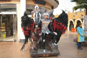 中午10点左右,同学们陆续到达目的地,按照各班级为单位同学们揣着好奇心陆续走进动漫主题公园——嬉戏谷,在公园里感受虚拟世界带给我们的喜悦。首先引入我们眼帘的是一条上山的路,周围是以动漫为主题色彩的淘宝小店,山脚下是一个人工湖,并以游戏中场景命名,给独有特色的主题公园增添了浓郁的动漫色彩。路的两旁不时还会遇到动漫游戏中怪兽的实体造型,为主题公园增添了置身动漫场景环境的色彩,来的同学们都能感受到这些都是在嬉戏谷独有的特色,在其他公园是很难拥有这样的氛围。融入感情的秋,表现得淋漓尽致。