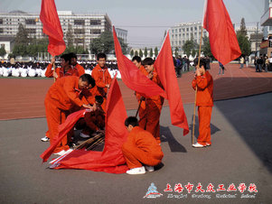 大众工业学校第八届学生田径运动会开幕式上,有这么一只队伍,他们身着橙红色实训工装服,手举鲜艳的红旗,英姿飒爽、活力四射,在带给全校师生美的视觉的同时,还呈现给大众学生们一股团结的力量,并让人深深体会到数控部的强大凝聚力。这就是数控0994班,由36位同学组成的大众红旗队。