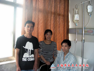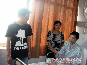 我们的高康校长公务缠身,但是也时刻牵挂着何棋,还联系上海的胸科医院,表示等他出院后,学校送他到该医院作全身的检查。电气部主任知道后,第一时间赶往医院探望何棋。班主任陈琼毅老师知道后,马上赶往医院看望他。医生说马上要动手术,必须由家长签字。但是,何棋的父母都在都江堰,怎么能签字呢?在这万分火急的关头,陈琼毅老师在征得他父母的同意下,握着笔坚毅地签下了自己的姓名。手术十分成功。陈老师白天上好班,下班后就急急匆匆赶往医院,照顾术后的学生。端饭端汤,一口饭一口汤喂给他吃。袁佩宏老师知道这个情况后也来看望自己心爱的学生,连夜守护他,生怕他落下什么病根。陈琼毅和徐秋芳老师还亲自到浦东机场接何棋的妈妈到嘉定区中心医院。一路上陈老师与何妈妈亲切交谈,让何妈妈感到温馨,自在。