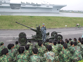 到了那里,先简单的进行了入营仪式,以让我们更快融入这次活动当中,然后便安排我们住的寝室,我们来到寝室置好衣物,穿上迷彩条式的军装,然后跟随教官去了“中国餐厅”,那里的饭菜十分的有营养。吃完饭之后,便回了寝室开始了简单的休息,以便于下午更好的训练,首先教官带我们去参观了“航空母舰”,里面的坦克,飞机都让我们眼前一亮,然后又带我们参观了别的东西,最后我们来到甲板,吹着海风大家看着周围美丽的风景,心里都十分的舒服。不知不觉间,充实的一天过去了……