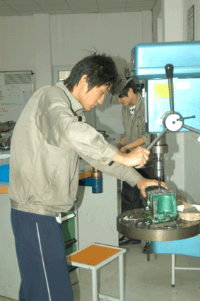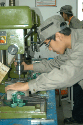 在上海大众工业学校的机电实训中心,有一个特殊的班级,有一组来自异国的老师,有一群与众不同的学生……他们就是德国双元制“模具机械工”班级,(俗称巴伐利亚班)。在巴伐利亚中,30个学生(05级学生,择优录取)都有潜在的能量,只是很容易被习惯所掩盖、被时间所剥离、被惰性所消磨。他们5个月的锻造不单单是技能上的,而是对综合素质的一种升华。经过了这5个多月的高温锻造他们已有不同程度的“从铸金石到金子”的雏形变化,他们将在11月下旬体验“升炉”,对“炉”中的“金子”检验其纯度。届时将以5个月的培训成果,去面对“德国工商协会”的严格审察。