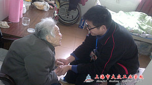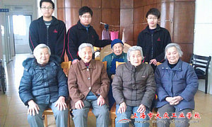 吉星的一组,看望的是一位百岁老人,见到她的那一刻,学生都惊呆了。无论头皮还是脸上,无论手上还是手腕,都是一条条的褶子,瘦得不成样子。老人说,当年她出生在一个很穷的家庭中,那时还在打仗,到处腥风血雨,没多久又赶上了饥荒,真的是吃了上顿没下顿,能吃到肉真的算是上天给的一种恩赐。她还说,那时有很多类似于地主之类的人经常会霸占一些刚刚熟透的谷物,所以她经常饿肚皮,受欺凌。说着说着不时地拍打着吉星的双手,让学生们感受到她那深深的皱褶里包含着辛酸和苦难,使在场的人心里有些不是滋味。她又说,自从改革开放后,她真得感受到了什么叫做好日子,吃喝不用愁了,有时顿顿都是荤素搭配,说着说着还不时地拍着学生的手,她的脸上洋溢着幸福的笑容,可是,当吉星感受到了她的温暖时,她的手竟是那么得冰冷,吉星不禁紧紧握住她的手,希望自己的温暖能传递给她。她还要学生们好好学习,孝敬父母,将来报效祖国。说的时候,老人的眼里流露出渴望儿女照顾的深情。临走前,吉星请老人合了一张影并拍下了各自的手,并上传到网上。他们这么做,不为别的,只望换来社会的关注,孤寡老人其实很需要爱和精神上的安慰。