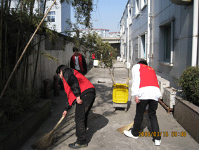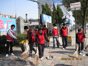 8:50分志愿者队伍身披红马甲准时集合完毕,在冯晓军、王培军、刘文斌老师的指挥下,分成校门东侧(市场部至艾帕咖啡厅前绿化带)、校门前(门卫室前绿化带、电动门、护栏)、校门西侧(门卫室至原技校部大门围墙护栏、绿化、道路)三块清扫区域。集中清理区域内卫生死角,清理乱招贴,清洗岗亭、护栏、电动门、果壳箱,规范车辆停放秩序,清理绿化带垃圾及杂物,擦拭学校围墙栏杆。所有志愿者分工明确,迅速找到自己工作岗位,个个埋头苦干,一片热火朝天的景象。为了世博,为了文明,为了整洁的校园周边环境,他们放弃了休息,在明媚阳光的映照下他们更显青春与活力,文明世博的精神深深的体现在了他们的身上。