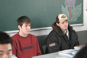 0577教室的最后一排,阳光下他们专心的听讲;每天的操场集合中,风雨里他们整齐的列队。他们很快的融入了班级,可以和班级的学生老师自然的交流,班会课上的欢迎仪式让他们感动;他们很快的融入了学校,大众工业的教学颁奖典礼上,他们用简单的中文对全校同学作了介绍,全校5000多名学生的掌声让他们欣喜;短短的两天时间,德国小兄弟几乎已经成为了学校当之无愧的一份子。