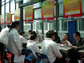 这次招聘会是我们学校领导协同教学部和市场部一次良好的合作,希望07级学生以积极的姿态面对实习推荐,为自己的“生涯规划”开一个好头!!