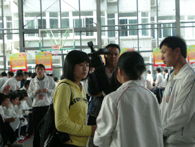 在这次招聘会上,四川受灾区都江堰学生的实习推荐受到了校领导和面试人员的重视,背井离乡的他们可以在半年内适应上海的学习环境,完成由校园人向社会人转变的过程么?嘉定电视台的特派记者田蜜将给我们一个答案,面试现场,机电教学部0776班都江堰学生范玲,作为宣传部采稿的学生穿梭在招聘会现场,她的灵巧身影引起了田记者的注意……现场的采访过程,范玲表达了她在校园的充实生活和良好的求职愿望,表达了我们广大学子平稳求职就业的心声。