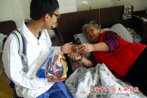 9月18日,在嘉定区社区福利院里出现了大众工业学校机电教学部1171班的10名学生,他们和老人聊天,为老人打扫房间,给老人捶捶后背,还带去了全体1171班同学们的小小心意——水果点心。同学们积极而热情,其中有一位家住闵行的同学,凌晨4点从家中赶到学校与同学们一起出发;与老人们的相处,让同学们感到愉悦而伤感,像一位同学说的:“福利院的环境很不错,但还是感觉到老人们好孤独,我们要利用有限的时间,给他们带来温暖。”
