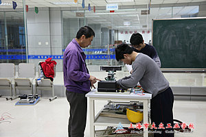 每位老师带教学生都从基础开始。陈超老师开始时先介绍机电一体化YL235流水线,接着讲授每个零件的拆装,最后讲传感器的好坏的识别。为了加快速度,尽快完成装配,陈老师手把手指导学生拧螺丝的手法。为了快、准、稳,陈老师就如何确定每一个零部件的尺寸,固定位置,都一一传达给学生,以达到更高效率的装配。整个设备安装完毕后,陈老师指导学生检查每一个传感器是否正常及气缸能否动作。完成之后,再交给编程的同学,让他迅速地开始调试设备,并传入编写程序,进入设备,开始调试。两位学生必须默契配合,最终一起完成。今年参赛有2组选手,每组2个,他们争取在国赛中拿下2个金奖,不低于去年。