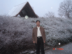 今天德国下了一场雪,早晨出来时已经白雪皑皑了。等车时天还没有亮,等到学校时,雪下的很大,但只要在室内,开着暖气穿衬衫都可以。我趁休息时,想在大雪中抓拍照片,就在衬衫外穿了件衣服。