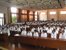 形式:利用09级班会课,由班主任带领,以班级为单位成二路纵队,纷纷落座多媒体中心,以全体起立的方式报到,历时1小时。