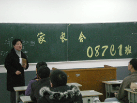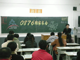 下午一点的钟声刚过,23个班级的班主任都进入了所在教室,从签到统计、发放问卷开始,根据班级和学生的特点,如“八仙过海,各显神通”起来。纵观本次家长会的重点,08级主要在学校介绍、班级概况、期中成绩以及学校半军事化管理的德育考核上;而07级的学生面临即将到来的毕业分流,主要从学生实习推荐要求、三校生高复班、巴伐利亚模具班、考试考证成绩、星光杯和全国技能比赛,如何提高学生的动手能力和面试能力等方面展开。会议的过程中,家长们都聚精会神,并适时提出自己的疑惑和焦虑问题,做到了很好的“家校互动”。