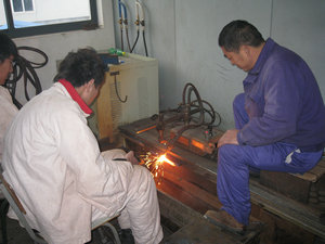 最后,再来到焊接实训中心看看焊接集训情况。刚刚踏进焊接实训中心的门口,刺眼的焊接电弧光就迎面袭来,顿时就会使人感觉到强光照射眼睛带来的不适。焊接操作是一项较难掌握技能,在作业中不仅要运用手腕的力量握紧焊枪,同时也要有娴熟的焊接操作本领,这一项训练对集训的学生而言可是一想很难练就的本领,因为在焊接的过程中肉眼看不到焊接部位的接合情况,很多时候要凭经验去判断焊接部位是否达到标准、是否满足评判要求,在完成工件之后要到定点的焊件检测部门进行超声检测才能完全得到焊接情况,