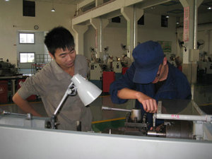 在训练中,一个微小的细节就会使加工工件成为超出公差的废品,同学们一次次失败,一次次讨论导致加工误差的原因,有的同学一个零件要加工三、四次,反复实践找寻问题的根源,在操作过程中指导教师及时给予指导,为同学们指引方向。一次次失败,一次次拼搏,不断地在失败中寻找着通向成功之路。紧张的集训是为了使同学们能够练就高操的技艺,不断超越自我、完善自我。
