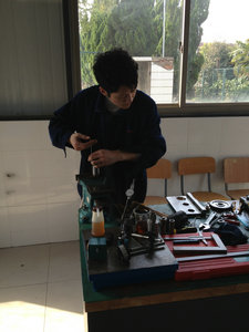 3月7日上午参赛选手们到达活动现场后,自觉地投入操作前的准备活动中,准备过程如同真正比赛一样,他们认真准备着每一项操作项目,当指导教师宣布活动开始后他们争分夺秒,反复研究装配图纸,按照要求逐项完成各个比赛项目,回想在校训练的时候,他们废寝忘食坚持训练的身影,反复做、反复练,一遍不行,多练几遍。在实际操作过程中,遇到问题总会共同探讨和研究,在实践中认真总结,直到解决和满意为止。训练中不断加强基本功的训练,不断完善训练方法和内容,虽然,训练的过程既艰辛又枯燥,在实训场所总是留下他们辛勤的汗水。