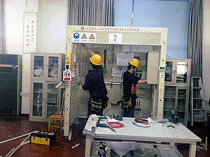 12:20分,上海市大众工业学校的选手们率先完成任务,第一个点亮了照明灯,摘下了安全帽。擦去辛劳的汗水,平息紧张的身心。比赛到此结束。