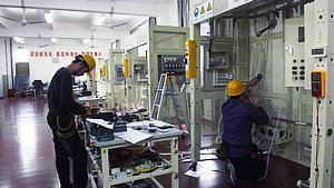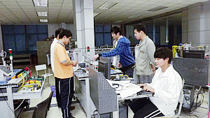 训练是异常艰苦的。每天的训练从早上八点一直持续到晚上九点,真正的大强度、长时间的专业化训练。以“电气安装与维修”项目为例,每套程序要耗时4小时。在这4小时内,选手们要异常紧张、快速地操作,否则就不能按时完成任务,因为任务作业量相当大。选手们在努力成功完成任务的同时,还有时刻注意达到比赛时工艺上的高要求。每次紧张忙碌完一套任务,选手们都是早就汗湿衣衫,体力透支。所以沈老师开玩笑说备赛除了要有良好的专业知识基础外,还要具备强健的体质,一定要有吃苦耐劳的精神,否则根本不能坚持下去。这样的训练对“电气安装与维修”项目的两组选手来说,每天都要经历2次:上午做一套,下午还要做一套。安装好了还要拆除、整理设备。拆除、整理设备也是一项艰辛的活,完成一套设备的拆除要历时2小时!选手们每天就是在这样大强度的劳作中度过。可以想象,没有坚定的信念,没有心中那热腾腾的理想的激励,没有肩上学校、上海市人们的殷殷重托,是很难坚持到最后的。