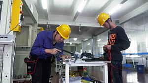 全国职业技能大赛比拼的是指导教师的专业水平和指导水平,比拼的是选手们的意志和毅力,这是一个最高水平的斗志斗智的竞赛。本次指导国赛的电气部教师有龚魏清、陈超、沈炳良、袁佩宏四位老师。作为国赛的指导教师,他们投入了全部的心血和智慧,他们每时每刻都要思索和酝酿精准的训练题目和知识点,他们要时时关注选手们的知识掌握情况,选手们的训练情况,随时做出调整和完善。国赛的理论知识面涉及很广,工艺和操作熟练度的要求都极高。以“电气安装与维修”项目为例,比赛时理论知识占分20%,操作占80%。知识面涉及维修电工初、中、高级的知识点,要熟练应用PLC编程,用到步进电机等这些专业知识。在动手操作方面,要求动手能力很强,工艺要求也非常严格,标准非常高:安装尺寸< 5mm,线槽拼缝<0.5mm.。可以说,选手们不但要成功完成任务,还要做到出来的产品像一件高超的工艺品一样!这就要求不但要非常熟练,快速操作,还有异常细致,精准。