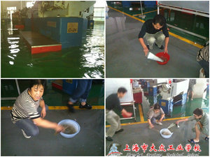超强台风的肆虐不仅影响了人们的出行,同时也严重影响了学校教学秩序的正常进行,机电教学部的机电实训中心被水淹,实训中心里的多台机床浸泡在台风肆虐的雨水中,学校得知这些情况后暂停实训课程,教学部组织机电实训中心相关教师立即投入实训中心排水救灾工作,保护机床的安全,保护学校的教学资源。室外的大雨在不停的下着,老师们在奋力的装填防水沙袋,雨水夹杂着汗水湿透了衣背,将牢固的沙墙堆放在实训中心门口,阻挡住持续涌入的雨水。阻挡住涌入的雨水后,老师们拿起扫把、盆、垃圾箱、拖布开始打扫实训中心内部的水,一盆一盆的收集起来运往实训中心外面,热火朝天的忙碌着让老师们忘记了疲惫,忘记了汗水。这一番众志成城排水保护实训设备的景象突显了机电成员不畏艰难、团结一致的保卫机电家园的热情。