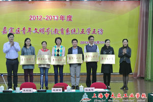 2013年10月17日下午1点30分在嘉定区南翔小学召开2012-2013年度嘉定区青年文明号(教育系统)互学互访活动,我校机电教学部青年教师组成的机电实训教研组通过一年多的创建工作,最终通过教育局层层评审获得嘉定区教育系统2012-2013年度“青年文明号”称号。