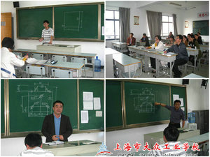 在会上,车工教研组俞诞夏老师和钳工教研组朱轶佳老师分别从车工、钳工实训课题开始授课,其余老师们都充当他们的学生,并从他们组织教学、实施教学、教学手段和方法以及教师仪态等方面寻找不足并进行指导。他们每个人所允许的讲课时间只有20分钟,利用这些时间讲述完所选课题。