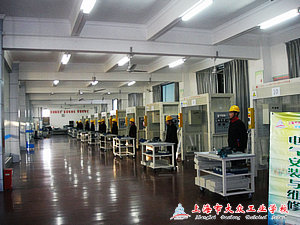 “机电一体化设备组装与调试”项目比赛时间是4个小时,早上7:30分就正式开始比赛了。比赛以小组形式进行,每2名参赛学生组成一个工作组,2名同学分工明确,1名同学负责编写PLC控制程序,1名同学则负责接线、调试。比赛一开始,每个参赛选手就按照分工,各司其职,各自忙乎开了:编程的同学边思考边飞快地在纸上写下一行行的程序,程序编写完了就赶紧输入到电脑里去;接线的同学则一刻不闲着,双手飞速的运作着,边看接线图边把一根根导线连接好,赛场上鸦雀无声,无形的硝烟却在弥漫着…….