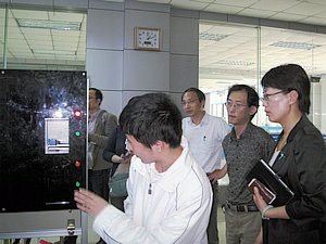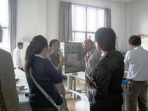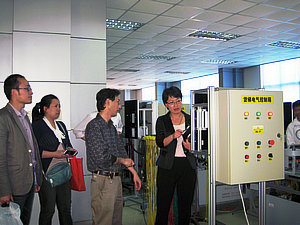 下午13:00,上海市高级技工学校的“双证融通”专业教师在刘建华副主任的带领下,准时来到我校。我校电气教学部主任周惠莉老师,先在多媒体活动中心的会客室热情接待了来客,简单介绍与布置了今天的活动主题与内容。