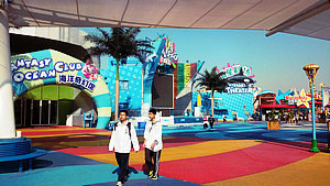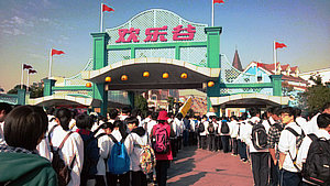 上午9点多钟,上海市大众工业学校的师生们顺利到达了欢乐谷,排队进入园区后同学们便急不可耐地三五成群,结伴四处游玩去了。9点多钟对欢乐谷来说还是“清早”,整个欢乐谷园区里还很清静,没什么游客,各种游乐设施基本都要到十点半或十一点钟才开始开放,连餐饮小店都还没开张。同学们乘着这个空闲正好在园区里到处走走,看看,把整个园区先逛一圈,侦查好各个游乐项目的位置,制定好游玩目标,盘算着要争分夺秒地把心目中的目标一个个拿下来,好好玩一把。