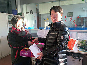 130102班的王静茹同学的家远在湖北,电气部主任周惠莉老师代表学校及电气部,亲自把学校准备的慰问金和水果交到了王静茹同学手中。周惠莉老师首先向王静茹同学送去新年的祝福,勉励她认真学好专业知识,掌握高超的专业技能,努力成为优秀的技能人才。王静茹同学是130102班的班长,入学以来在学校里各方面表现都很出色,平时也很积极参加学校及部里的各项活动,学习上更是认真刻苦,是个各方面都很优秀的好学生。
