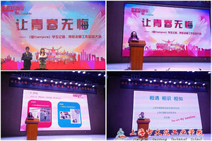 中午十二点整,我校的六名学生记者与指导老师从学校出发,经过一小时的车程到达会议地点。会议开始后,主持人用热情洋溢读的开场白夹带着绚丽多彩的PPT,让人眼前一亮。 而这其中最让人记忆犹新的便是随着主持人的介绍,屏幕上跳出了《职Campus》的宗旨:“以文字记录青春故事,用才华成就事业梦想”的大字。美丽的绘图加上触动人心的语言,让每一个学生记者为此一颤。