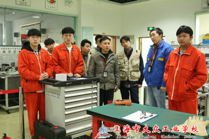 付磊副校长还带领学生记者们参观机电一体化设备安装调试、工业机器人、CAD制图、数控车、新能源技术训练现场,在参观过程中,付磊副校长轻声地向学生记者们介绍比赛项目的基本情况,目前各个训练的赛项内容都来自于企业生产项目,所有题目都十分贴合生产实际,学生在校学到的技能到企业也会用得上,企业对电方面人才需求度也很大。在聆听介绍的同时学生记者们也认真地观看选手们操作情况,采访活动也使得来自于不同专业的学生记者对其他专业领域有了更加直观的了解,让学生有机会感受职业技能带来的喜悦。