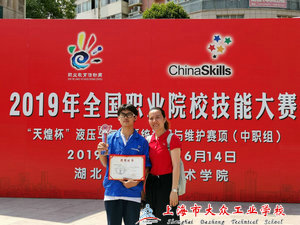 2019年6月12至13日,由教育部主办,湖北省教育厅承办的2019年全国职业院校技能大赛的液压与气动系统装调与维护赛项在位于湖北十堰的湖北工业职业技术学院开赛。来自全国31个省市的140名选手进行了激烈角逐。我校李旭东、郭玲玲两位指导教师指导的学生赵峰和吴昕扬沉着应战、发挥出色,最终以优异成绩摘得一金一银两枚奖牌,李旭东获得“优秀指导教师”荣誉称号。我校副校长付磊、教务处主任张建刚观摩了本次比赛。