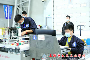 机电一体化赛项为团体赛,两人一组,需选手在4个小时内完成机械部件组装与设备安装、电路安装、气动系统安装并根据工作任务要求编写PLC控制程序与设置变频器参数、制作触摸屏页面、设置通信参数,最终实现对机电一体化设备的自动控制。比赛现场,我校6名学生争分夺秒,在规定的时间内进行了装配、编程以及调试的比拼。