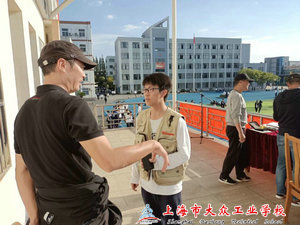 在赛场上,学生志愿者们正在为比赛、进行准备,即将参加比赛的运动员们有序地在检录处检录,其余同学们早已围在赛场旁准备为运动员们加油,校园记者们也在忙着采访参赛选手、老师和裁判员,并用镜头记录下一个个难忘的瞬间。