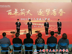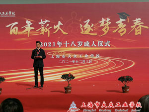 2021年12月3日下午,上海市大众工业学校2021年十八岁成人仪式在学校操场上隆重举行。校党总支书记、校长冯明,原校党总支书记梁桦,校党总支副书记杨建英,副校长付磊,副校长沈菊芳,副校长王亚莉,校工会主席徐剑,校家委会主任朱建麟及相关职能部门领导、各系部领导、家委会代表以及来校挂职的云南、西藏、宁夏的领导老师们参加本次活动,现代制造系徐智杰同学一起担任本次活动的主持工作。十八岁,朝气蓬勃如旭日般的青春;十八岁,清新芬芳如甘露般的年华;十八岁,翅膀翱翔着无比纯真的梦想;十八岁,足迹延伸着无限美好的希望。