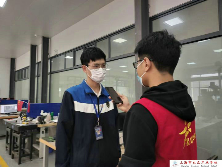 记者还采访了世界技能大赛上海市选拔赛中“原型制作”、“工业机械”两个项目获得第一名的参赛选手李春龙、丁佳权两名同学,他们所学的都是数控技术应用专业。在采访中丁同学大方地分享了自己的比赛经验,他认为在赛场上最重要的是建立自信心,还要加深对知识和技能的掌握程度。而对于如何加深,丁同学的方法是每天晚上花一段时间用来巩固,吸收一天所学的知识,从而养成对自己技术的自信。李同学则对训练过程进行了回顾,他提到,虽然现在取得了优异成绩,但他刚刚进入集训队时,与大多数同学一样,都因为不熟悉比赛项目而感到紧张,好在老师及时给予了他更多的帮助与鼓励,在训练的过程中,老师所讲的知识点他无法快速理解,这时他便会记下来,在空余时间慢慢钻研。