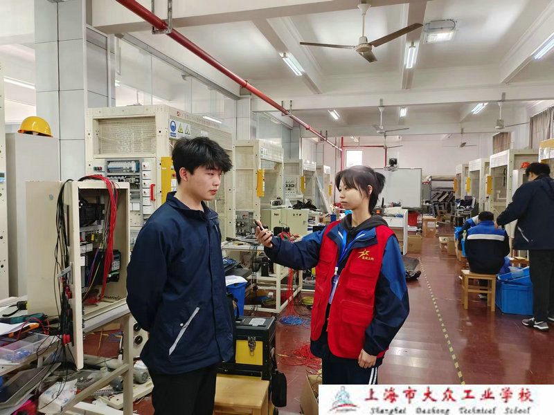 2023年4月3日,“星光之约”记者团学生记者在上海市大众工业学校采访了正在参加上海市“星光计划”第十届职业院校技能大赛“电气安装与维修”项目的备赛同学。