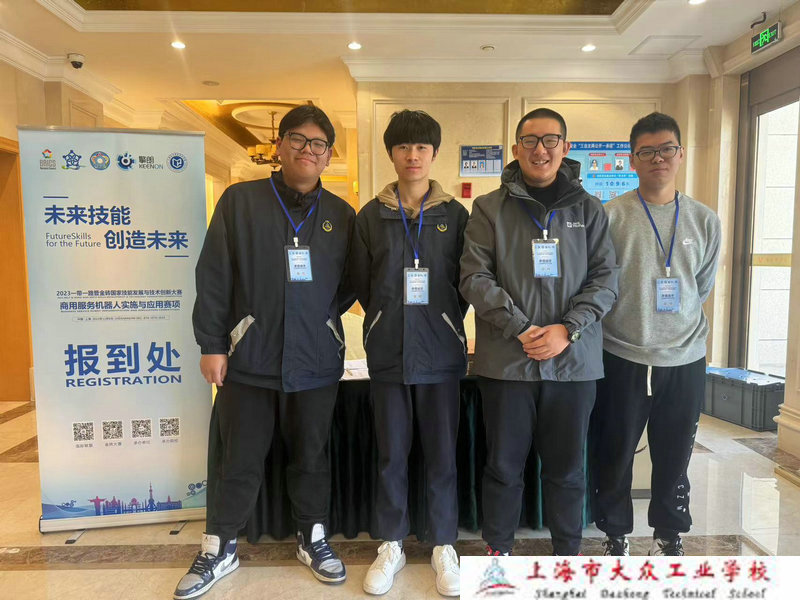 在比赛中,陈宇宏、林康鑫、王子安、李宇桓四位选手展现了商用服务机器人的部署、调试、测试、应用、售后等专业能力和团队协作精神。他们在备赛时间短暂以及缺乏设备的情况下,互相鼓励、相互支持,充分展现了选手们的职业素养和学生综合职业能力。