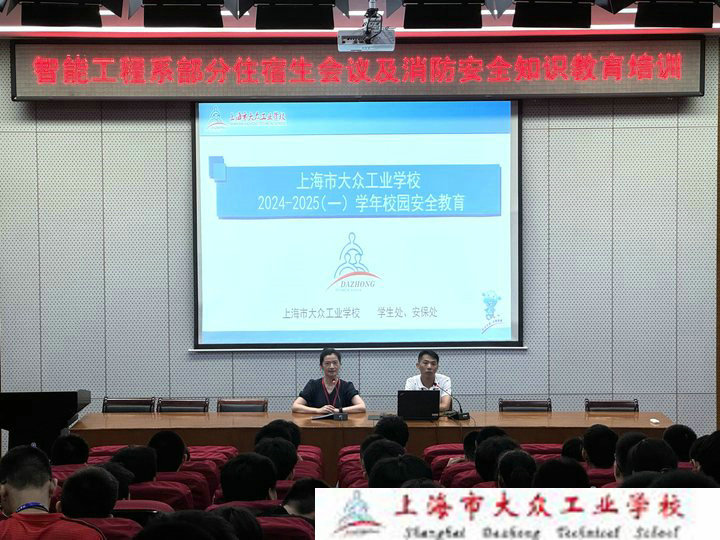 为进一步强化住宿生管理,提升同学们的安全意识,特别是消防安全知识,2024年9月3日晚,上海市大众工业学校智能工程系联合学生处成功举办了新学期住宿生集结会议以及安全知识培训活动。此次活动不仅是一次纪律与规章的宣贯,更是一场关于安全教育的深刻课堂。