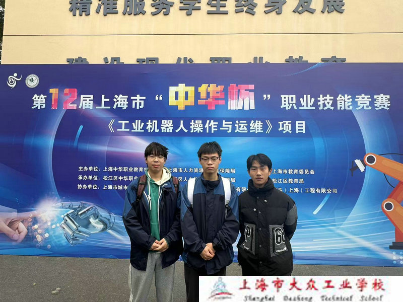 2024年11月9日,第十二届上海市“中华杯”职业技能竞赛工业机器人操作与运维项目在上海市城市科技学校圆满举行。此次大赛由上海中华职业教育社联合市人力资源和社会保障局、市教委共同主办,松江区中华职业教育社、区人力资源和社会保障局、区教育局共同承办,上海市城市科技学校、北京华航唯实机器人科技股份有限公司和柯马(上海)工程有限公司共同协办。我校智能工程系222201班学生瞿子浩代表学校参赛,并凭借出色的专业技能和稳定的发挥,荣获三等奖。