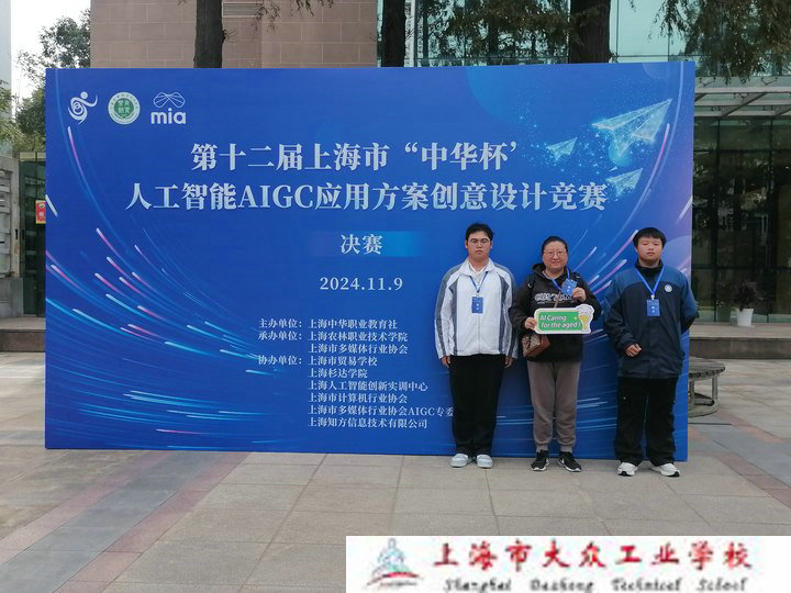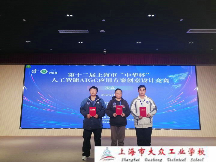 从注册报名、提交作品、初赛评审、到决赛晋级,只有短短两个月左右的时间。时间短、要求高、难度大,加之这是我校首次参加上海市“中华杯”人工智能AIGC应用方案创意设计竞赛,凡事开头难。陈老师的团队必须在两个月内,克服缺乏专业技术培训和参赛经验的困难,一切从零开始,陈老师利用业余时间,通过互联网,自学了AIGC的专业知识和技能,并且将这些专业知识和技能传授和分享给团队内两位学生,大家积极准备,克服困难,集中精力,完成项目,最终在与全市范围内的三十五支AIGC技术强校队伍一同角逐,一路过关斩将,站上决赛的获奖舞台,实属不易,实现我校在AIGC奖项中零的突破。