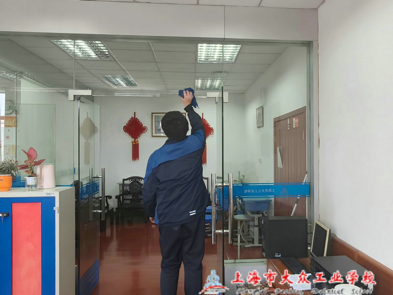 活动期间,学生们热情高涨、干劲十足,在老师的带领下,分成若干志愿小组,有序奔赴各个服务区域,开展全方位清洁工作。在实训室里,学生们分工协作、默契配合,有的仔细擦拭实训设备、操作台和门窗玻璃,清除设备表面的灰尘和污渍,整理实训工具和耗材,将杂乱的实训物品摆放整齐,不放过任何一个卫生死角,全力为师生营造整洁、安全的实训环境,让专业实训场地焕发新颜;在会议室,大家认真清扫地面、擦拭桌椅,整理会议资料,清洁墙面污渍,让会议室变得干净整洁、井然有序,为师生开展会议、交流研讨提供了舒适的环境;在校园公共区域,同学们手持清洁工具,沿着校园主干道、绿化带、走廊楼道等区域,弯腰捡拾纸屑、塑料袋、烟头,清理墙角的杂物和积尘,擦拭宣传栏、指示牌,用双手擦亮校园“颜值”,用行动守护共同的校园家园。